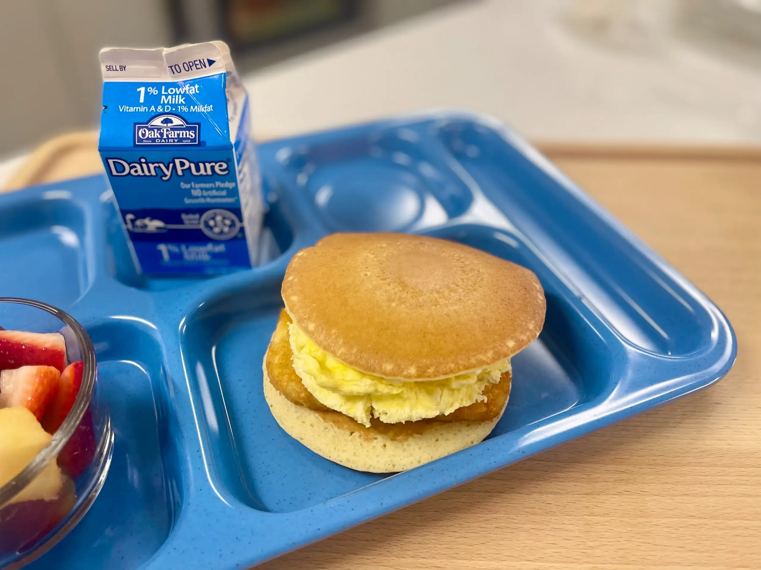- To prepare sandwich place 1 pancake, 0.25 cup hashbrowns, 2 eggs, and top withsecond pancake.